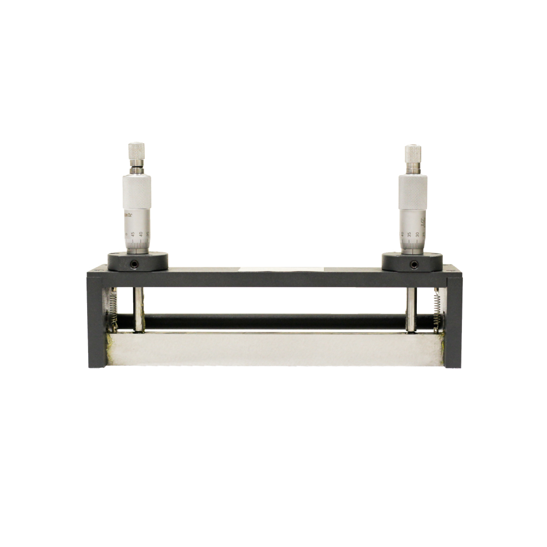 С помощью микрометрических головок выставить необходимую высоту паза. Аппликатор установить на испытательную пластину, перед пазом налить достаточное количество испытуемого материала и перемещать аппликатор с равномерной скоростью.