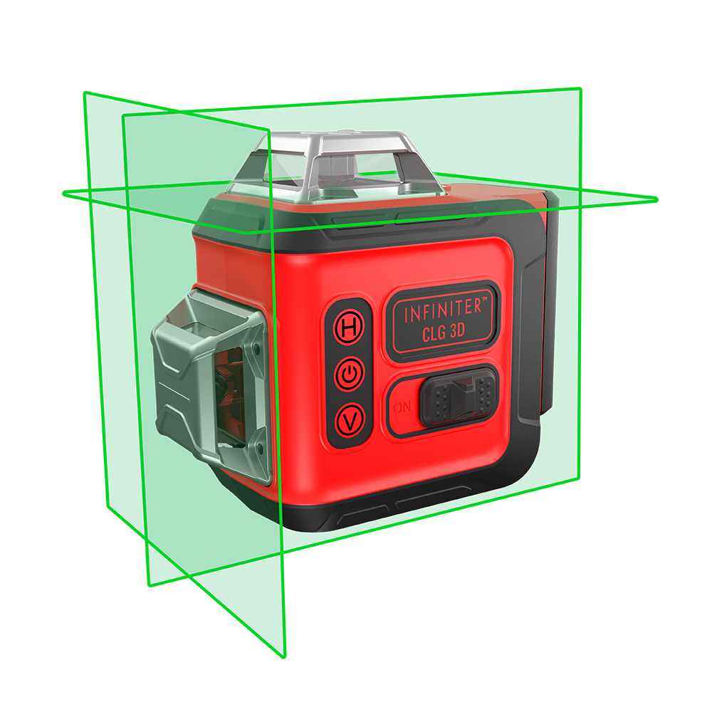 Лазерный нивелир INFINITER CLG 3D проецирует две вертикальные и одну горизонтальную плоскости с углом развертки 360°.