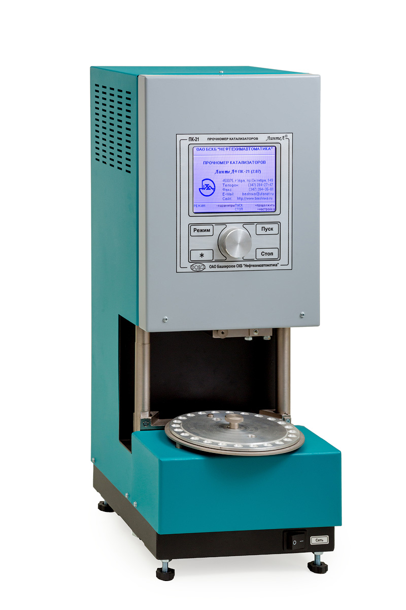 • Аппарат ЛинтеЛ ПК-21 предназначен для испытания катализаторов и минеральных удобрений на механическую прочность в статических условиях методом сжатия. Аппарат позволяет работать как автоматическом, так и в ручном режимах.