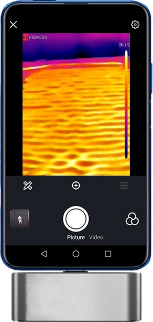 Тепловизор HIKMICRO совместим с планшетами и смартфонами на базе ОС Android, подключение производится через порт USB Type-C. Для работы не требуются батарейки или зарядка — питание поступает напрямую от подключенного устройства.