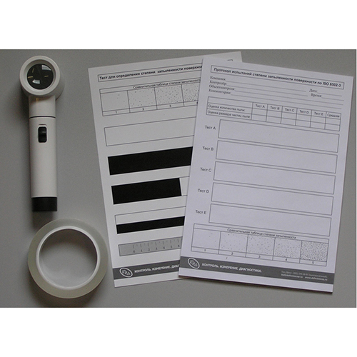 Набор предназначен для оценки степени запыленности поверхностей по ISO 8502-3. Данный набор позволяет проводить оценку количества и размера частиц пыли на очищенных поверхностях, подготовленных для окраски.