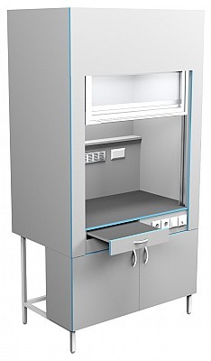 Шкаф вытяжной без сантехники ШВ НВК 1200 НЕРЖ (1200×716×2200). Описание: Вытяжные лабораторные шкафы применяются при работе с токсичными и вредными летучими материалами, с чистыми материалами, с растворением или разложением под температурной обработкой, при проведении анализа проб и многих других. Особенности: Дополнительная подсветка сбоку с плавной регулировкой Выдвижной столик Вытяжка из нижней тумбы позволяет хранить в ней реактивы Ударопрочный подъемный экран легко поднимается одной рукой Экран в поднятом состоянии не увеличивает высоту шкафа Внутри рабочей камеры полочка для хранения реактивов Две влагозащищенных розетки с крышкой внутри рабочей камеры Специальные доводчики в тумбе позволяют закрывать тумбу бесшумно По заказу столешницы могут быть выполнены из: химстойкого пластика керамогранита (плитка) полипропилена нержавеющей стали монолитной керамики эпоксидного керамзита