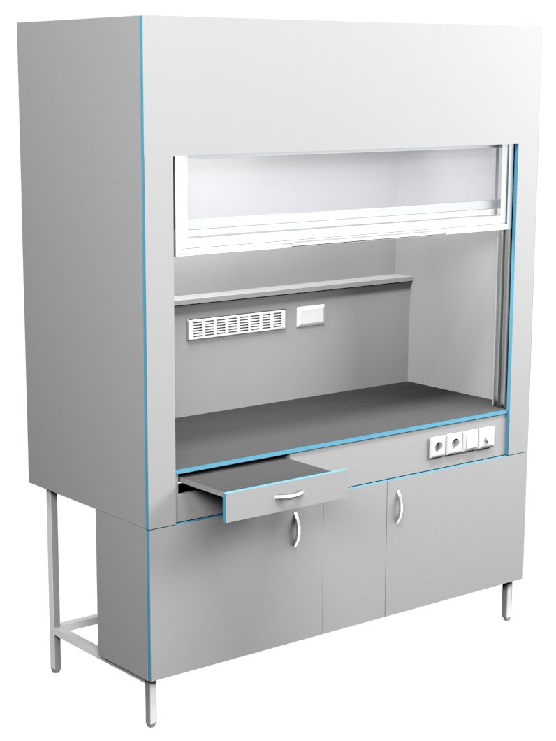 Шкаф вытяжной без сантехники ШВ НВК 1800 ПЛАСТ (1800×716×2200). Описание: Вытяжные лабораторные шкафы применяются при работе с токсичными и вредными летучими материалами, с чистыми материалами, с растворением или разложением под температурной обработкой, при проведении анализа проб и многих других. Особенности: Дополнительная подсветка сбоку с плавной регулировкой Выдвижной столик Вытяжка из нижней тумбы позволяет хранить в ней реактивы Ударопрочный подъемный экран легко поднимается одной рукой Экран в поднятом состоянии не увеличивает высоту шкафа Внутри рабочей камеры полочка для хранения реактивов Две влагозащищенных розетки с крышкой внутри рабочей камеры Специальные доводчики в тумбе позволяют закрывать тумбу бесшумно По заказу столешницы могут быть выполнены из: химстойкого пластика керамогранита (плитка) полипропилена нержавеющей стали монолитной керамики эпоксидного керамзита