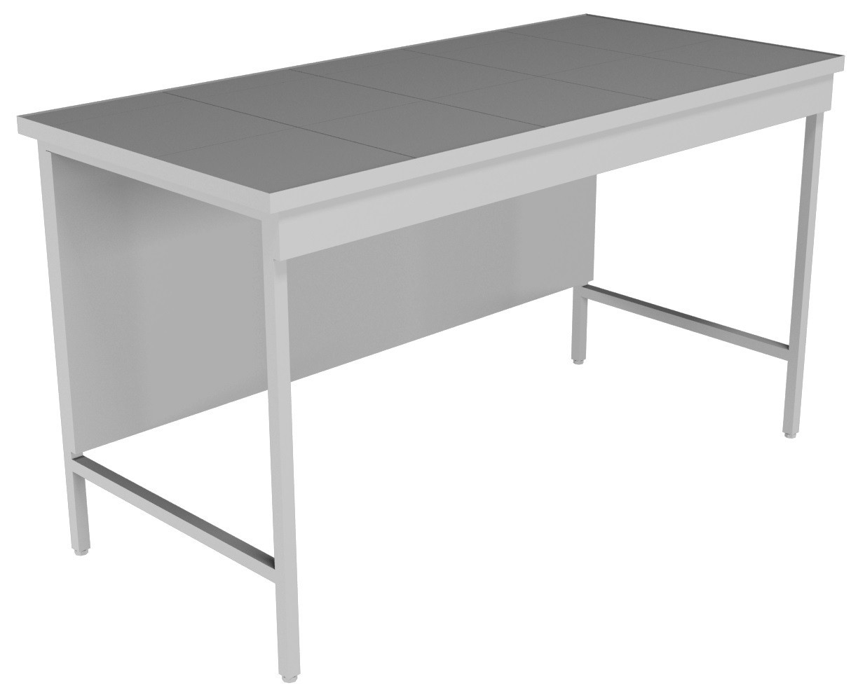 Лабораторный стол серии НВ-1500 ЛКн Стол НВ-1500 ЛКн – это низкий лабораторный стол, предназначенный для работы стоя. Столешница лабораторного стола выполнена из керамогранита.Керамогранит (плитка) обладает рядом преимуществ: устойчив к продолжительному воздействию кислот, щелочей и органических растворителей, обладает повышенной механической стойкостью, способен выдерживать высокие температуры, ограничено стоек к плавиковой кислоте. Возможные варианты различного исполнения столешниц, стойких к агрессивным материалам, делают лабораторный стол универсальным для любой лаборатории. В стандартном исполнении мы предлагаем лабораторные столы серого цвета. Кроме того, мы готовы изготовить столы по вашим размерам и из материалов отвечающим вашим задачам. Габаритные размеры 1090*700*750