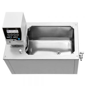 Внешний корпус ванны выполнен из стали, окрашенной порошковой краской, и надежно теплоизолирован от резервуара ванны, что позволяет оператору безопасно работать с аппаратурой даже при высокой температуре рабочей жидкости.