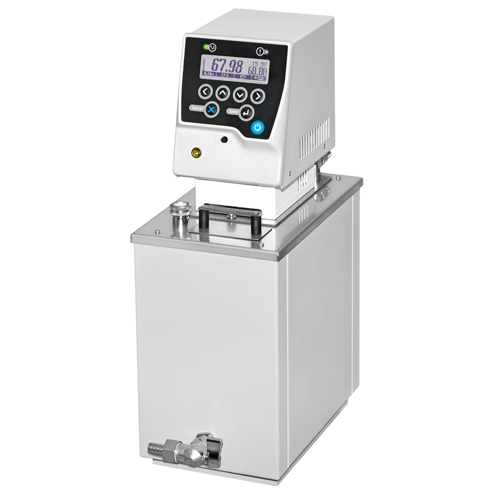 Компактный жидкостный термостат ВТ5 с ванной из нержавеющей стали предназначен для поддержания заданной температуры жидкого теплоносителя, циркулирующего как во внутренней ванне, так и во внешних потребителях закрытого типа.