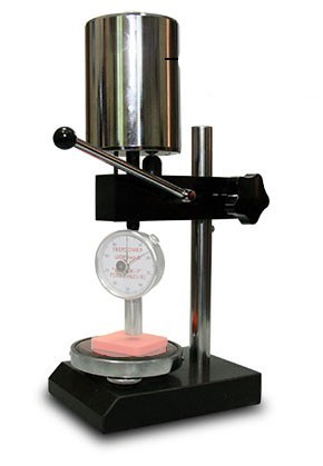 ОПИСАНИЕ: принцип действия дюрометров основан на внедрении стального индентора в образец при полном контакте измерительной площадки (ножки прибора) с образцом. Перемещение индентора отсчитывается по шкале дюрометра. Чем выше твёрдость — тем меньше внедрение индентора в образец и выше значение твёрдости, чем меньше твёрдость — тем больше внедрение индентора в образец и ниже значение твёрдости.