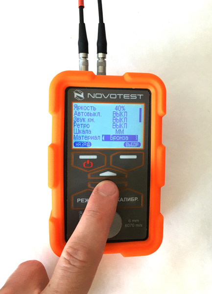 • предустановленные в памяти прибора значения скорости распространения ультразвука для популярных материалов