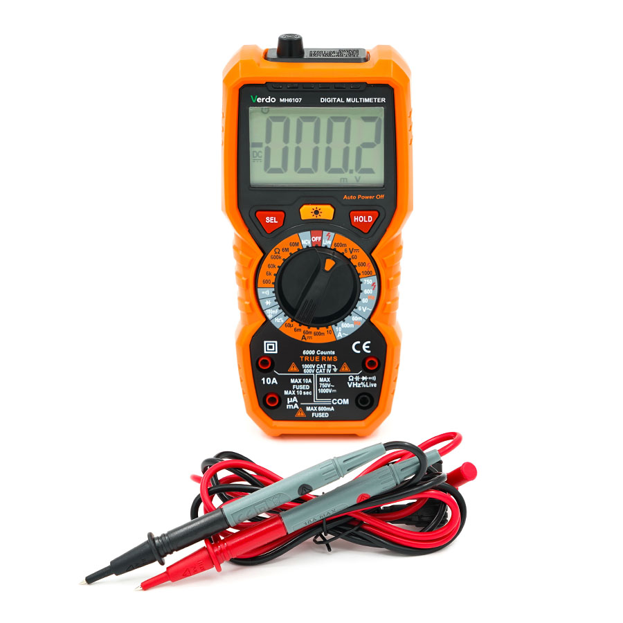 Мультиметр VERDO MH6107– это ручной цифровой мультиметр с функцией отображения истинного среднеквадратичного значения (TrueRMS) и большим жидкокри-сталлическим дисплеем с подсветкой и фонарем, что облегчает считывание показаний. Мультиметр оснащен функцией защиты от перегрузки и индикатором разряженной батареи. Этот многофункциональный измерительный прибор идеально подходит как для профессионального использования на производстве, ремонта и сервисного обслуживания, так и для обучения и бытового применения.