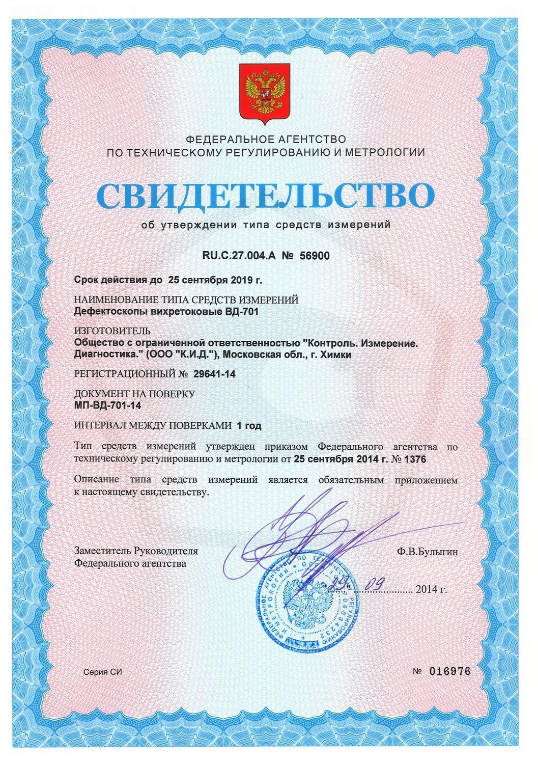 Номер в реестре СИ: 29641-14
