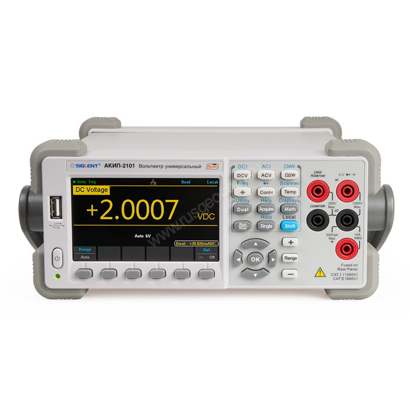 Вольтметр АКИП-2101/1 относится к категории стационарных лабораторных приборов. С его помощью можно выполнять измерения с высокой точностью и скоростью. Он измеряет напряжение и силу тока в электрических приборах, позволяет определить сопротивление и частоту, а также температуру при подключении к нему термопар соответствующего типа.